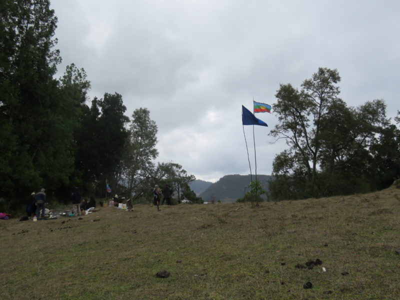 El Lago Pullinque, de fondo, recibía los ecos de la rogativa de Don Osvaldo y también la energía de las diferentes organizaciones que están apoyando los reclamos de esta nueva injusticia hacia el pueblo mapuche.