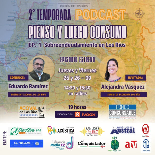 El sobreendeudamiento será el tema central de la 2° temporada del podcast de la Asociación de Consumidores Acoval de Los Ríos, que desde distintas miradas abordará esta problemática que afecta a millones de personas en Chile. Será emitido por 10 medios de toda la región de Los Ríos y estará en Ivoox.