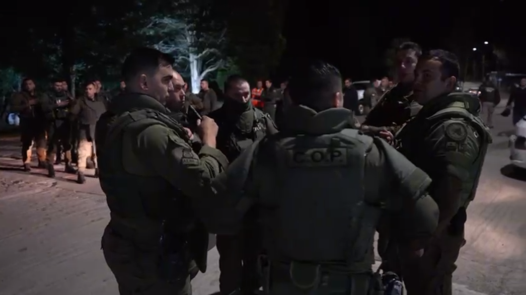 Contingente policial que realizó los allanamientos y detenciones en contra de la familia de Julia Chuñil en Máfil.