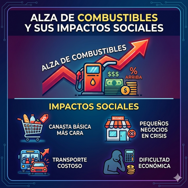 El gobierno de José Kast, tomo una decisión política a través de su Ministro de Hacienda, Jorge Quiroz de establecer las alzas que ya han sido oficializadas por Enap donde la Bencina de 93 subirá $372, la de 97 $391 y el diésel $580; modificando el impacto MEPCO (Mecanismo De Estabilización de Precios de los Combustibles , el FEPP (Fondo de Estabilización de Precios del Petróleo) y Sipco (Sistema de Protección al Contribuyente ante las Variaciones en los Precios Internacionales de los Combustibles). Dentro de los impactos se ven procesos de alzas de precios en alimentos y costo de la vida de las familias, ya que este aumento afecta todas las cadenas logísticas; recordándonos la estrategias del shock neoliberal durante la crisis económica de 1982, en plena dictadura. También se afectará los pagos hipotecarios y el acceso al crédito, ya que según el Banco Central en su informe de Política Monetaria de Marzo de 2026, se espera un aumento de la inflación hasta un 4% anual.