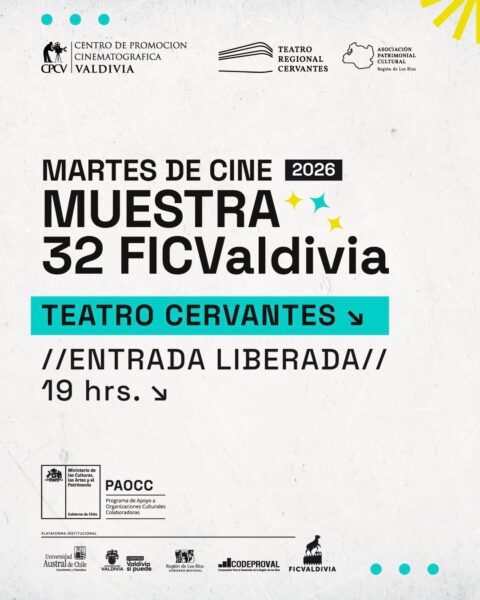 El próximo 31 de marzo se inicia la primera de seis jornadas del ciclo gratuito Martes de Cine. En una alianza con la Asociación Patrimonial Cultural de Los Ríos, la muestra se realizará en el Teatro Regional Cervantes el último martes de cada mes entre marzo y agosto. Cada jornada incluye tres funciones diferenciadas por rango etario y temáticas de interés, buscando integrar a diversos sectores de la comunidad mediante el séptimo arte:  A las 11:00 horas Cine Infantil; 14:15 horas Cine Chileno / Inclusivo y a las 19:00 horas la muestra con lo mejor del pasado 32º FICValdivia.